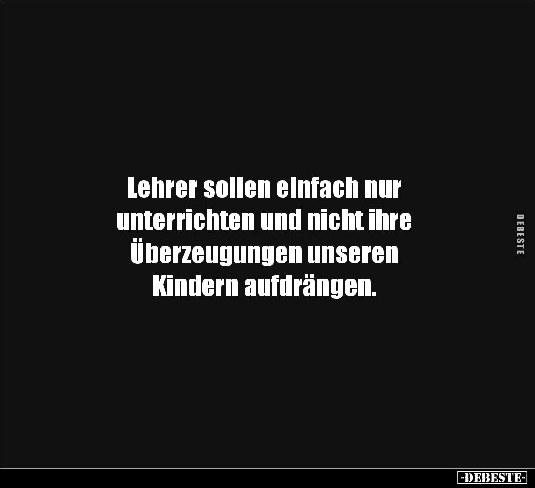 Lehrer sollen einfach nur unterrichten und nicht ihre Überzeugungen unseren Kindern aufdrängen.