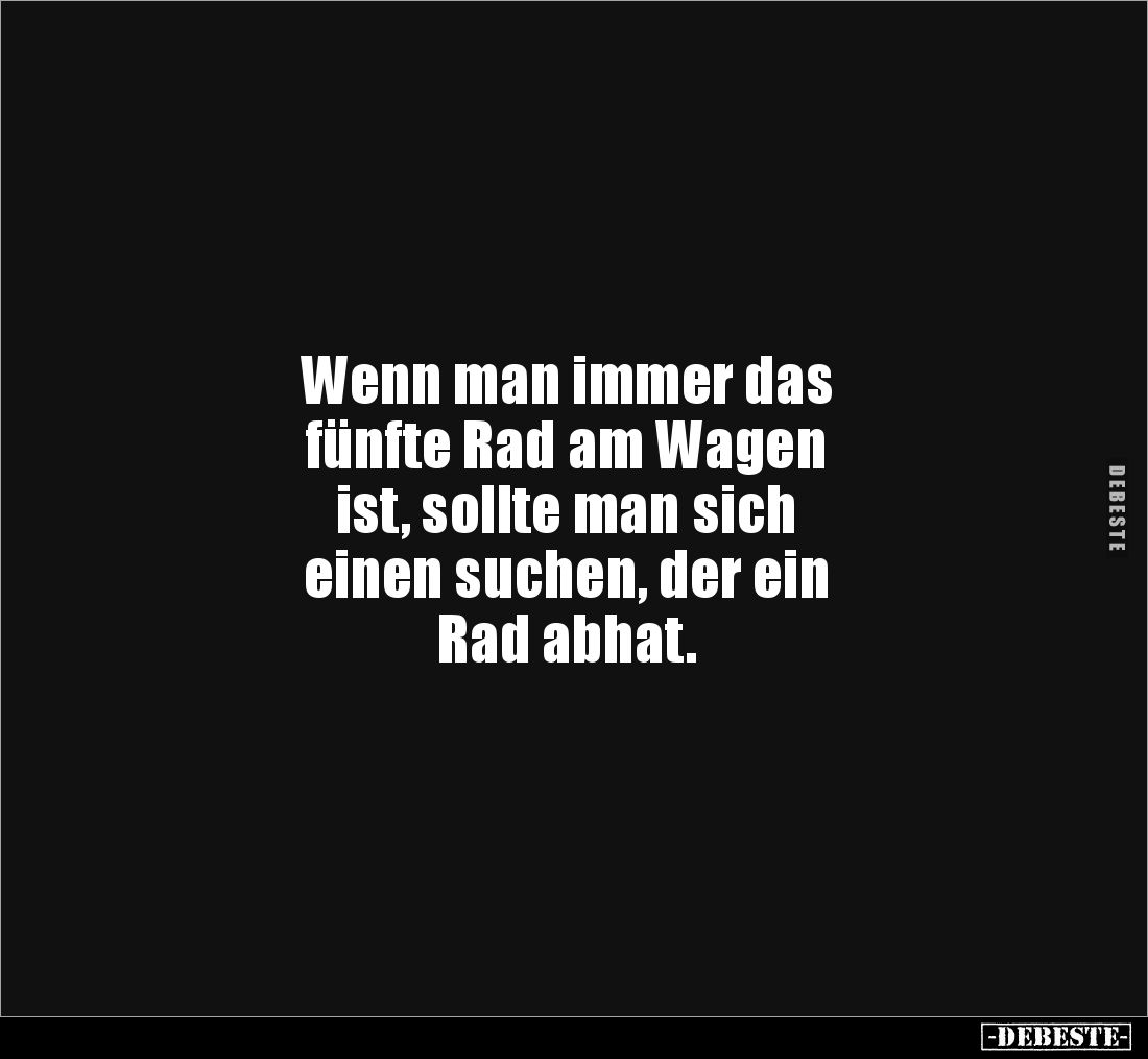 Wenn man immer das fünfte Rad am Wagen ist, sollte man sich einen suchen, der ein Rad abhat.