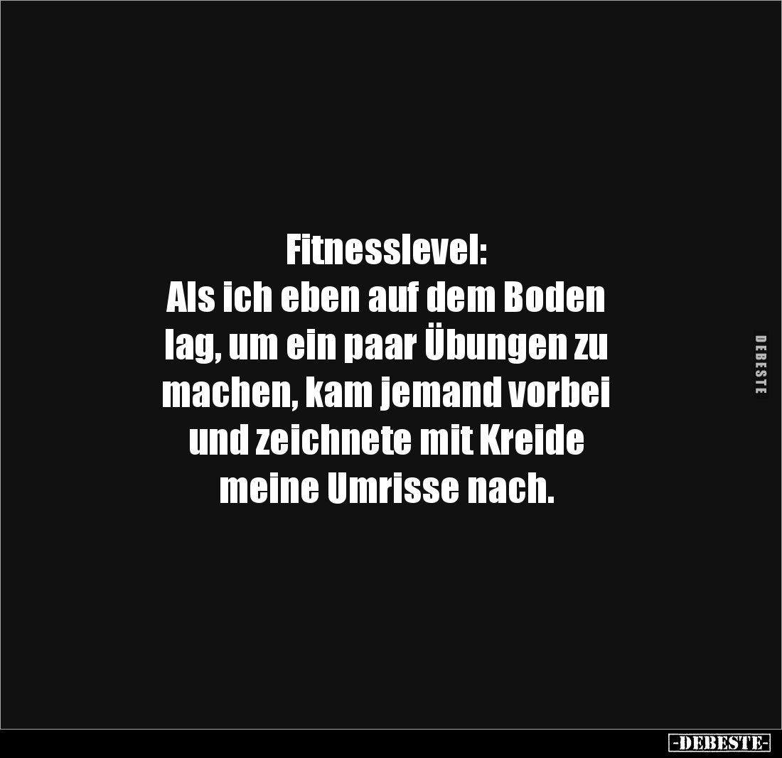 Fitnesslevel: Als ich eben auf dem Boden lag, um ein paar Übungen zu machen, kam jemand vorbei und zeichnete mit Kreide meine Umrisse nach.