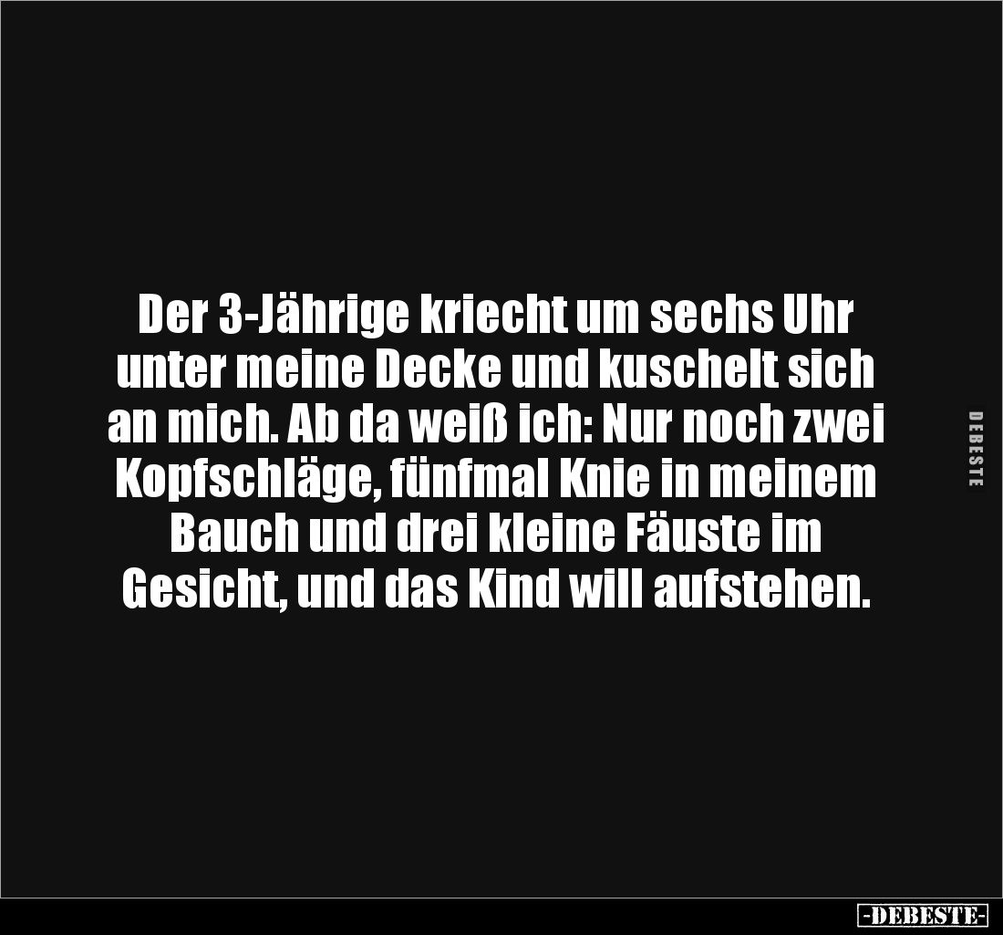 Der 3-Jährige kriecht um sechs Uhr unter meine Decke und kuschelt sich an mich. Ab da weiß ich: Nur noch zwei Kopfschläge, fünfmal Knie in meinem Bauch und drei kleine Fäuste im Gesicht, und das Kind will aufstehen.