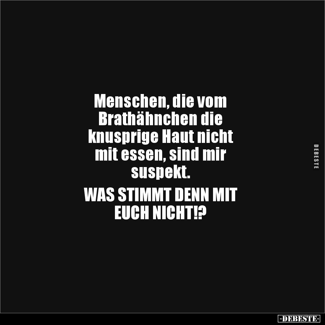 Menschen, die vom Brathähnchen die knusprige Haut nicht mit essen, sind mir suspekt. WAS STIMMT DENN MIT EUCH NICHT!?