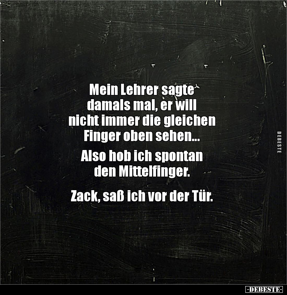 Mein Lehrer sagte damals mal, er will nicht immer die gleichen Finger oben sehen... Also hob ich spontan den Mittelfinger. Zack, saß ich vor der Tür.