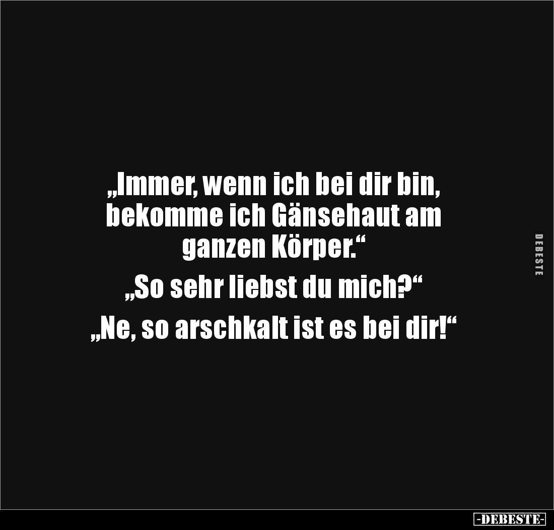 „Immer, wenn ich bei dir bin, bekomme ich Gänsehaut am ganzen Körper.“ „So sehr liebst du mich?“ „Ne, so arschkalt ist es bei dir!“