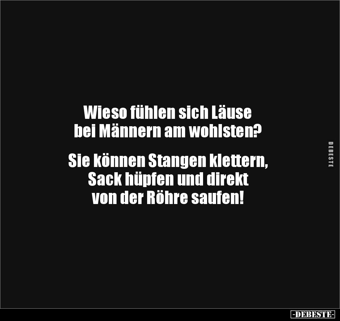 Sitzen zwei Opas auf einer Parkbank und unterhalten sich über ihr Sexleben. "Wie oft haben du und deine Frau eigentlich noch Sex?", fragt der eine. "Ungefähr einmal im Jahr", sagt der andere. "Einmal im Jahr? Das ist ja Wahnsinn." "Warum, wie oft ist es denn bei euch?" "Wir haben beinahe jeden Tag Sex", antwortet er. "Beinahe jeden Tag?" "Ja, beinahe jeden Tag! Beinahe am Montag, beinahe am Dienstag, beinahe am Mittwoch, beinahe am Donnerstag..."