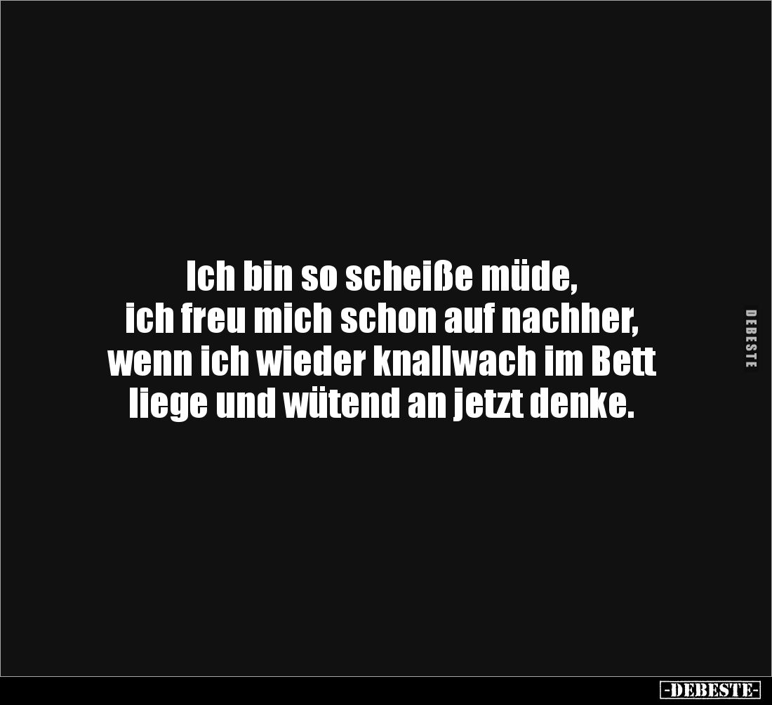 Ich bin so scheiße müde, ich freu mich schon auf nachher, wenn ich wieder knallwach im Bett liege und wütend an jetzt denke.