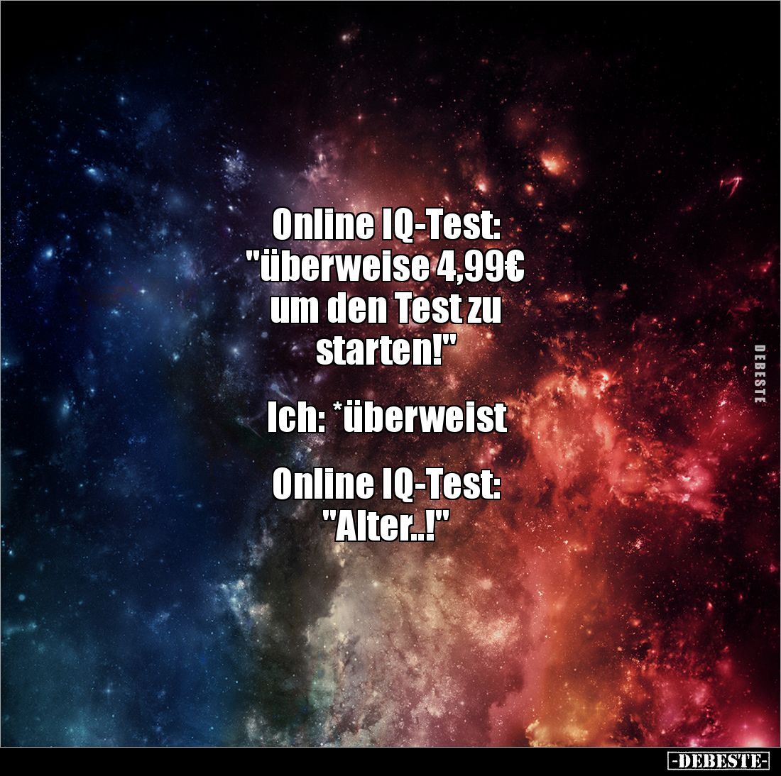 Online IQ-Test: "überweise 4,99€ um den Test zu starten!" Ich: *überweist Online IQ-Test: "Alter..!"