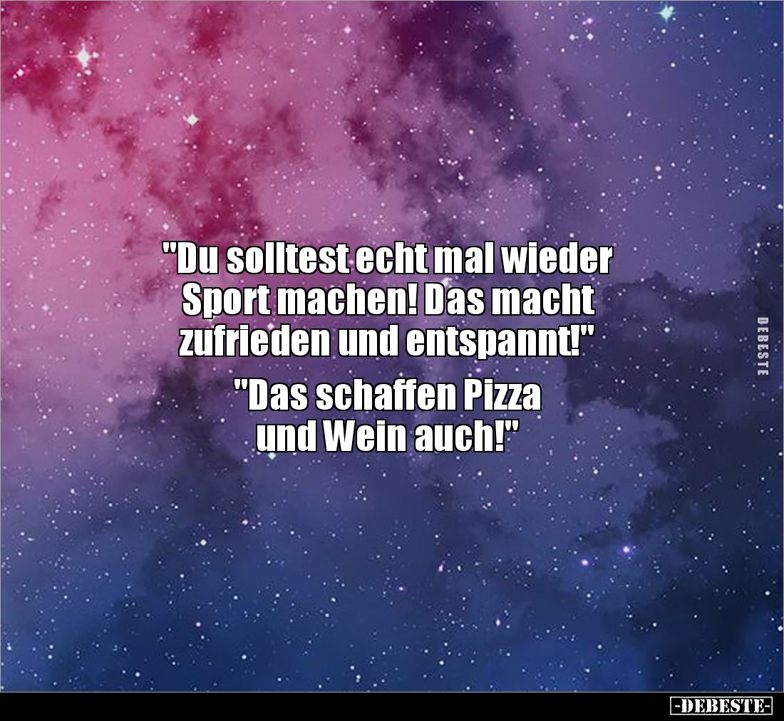 "Du solltest echt mal wieder Sport machen! Das macht zufrieden und entspannt!" "Das schaffen Pizza und Wein auch!"