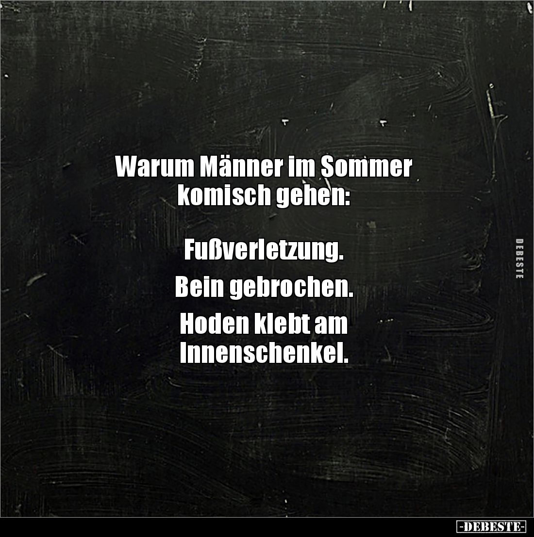 Warum Männer im Sommer komisch gehen: Fußverletzung. Bein gebrochen. Hoden klebt am Innenschenkel.