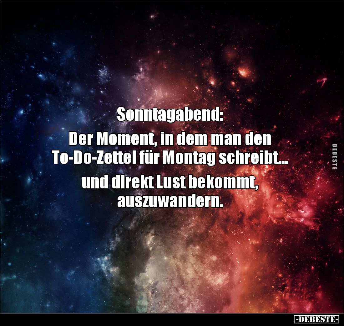 Sonntagabend: Der Moment, in dem man den To-Do-Zettel für Montag schreibt... und direkt Lust bekommt, auszuwandern.