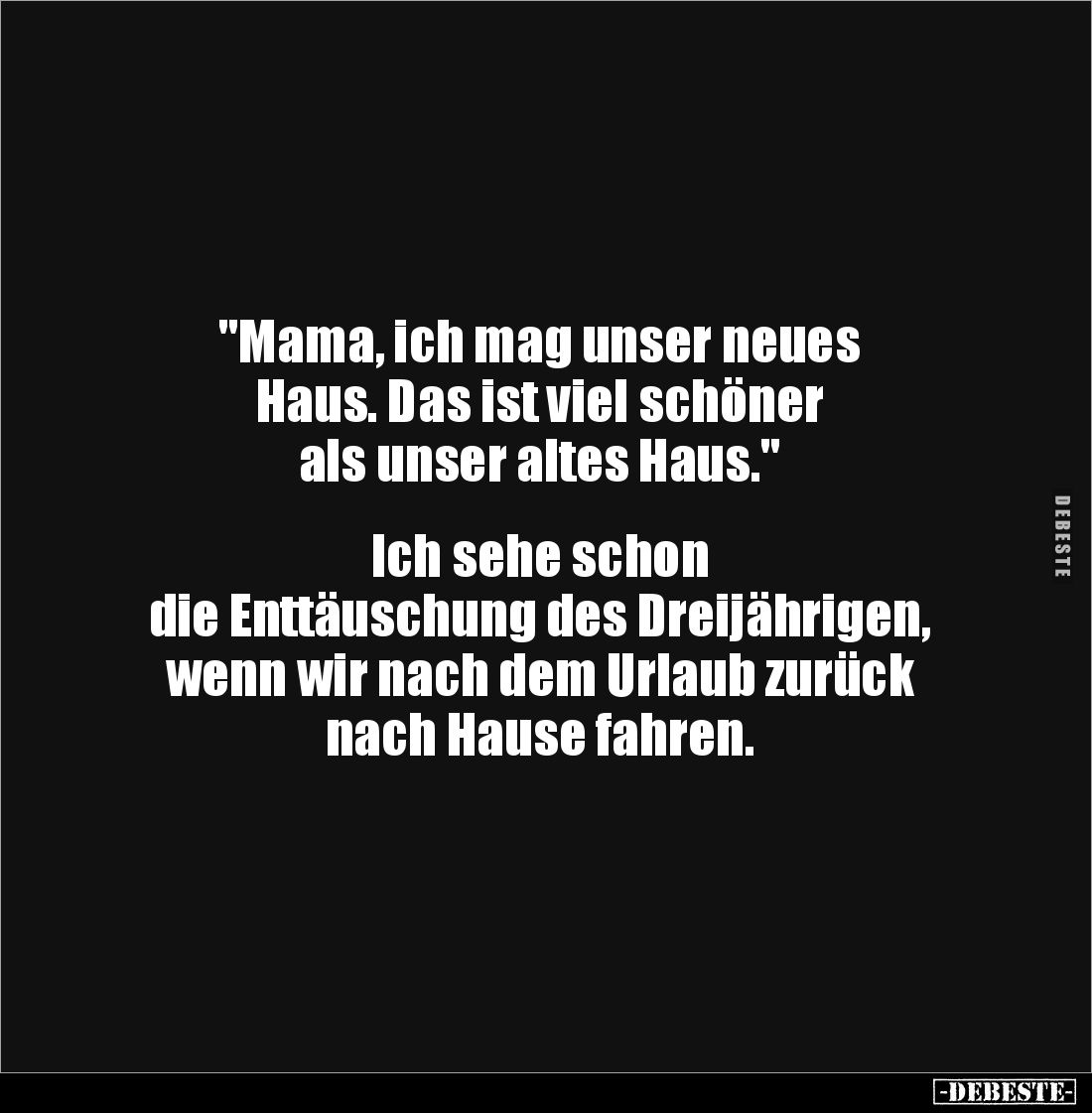 "Mama, ich mag unser neues Haus. Das ist viel schöner als unser altes Haus." Ich sehe schon die Enttäuschung des Dreijährigen, wenn wir nach dem Urlaub zurück nach Hause fahren.