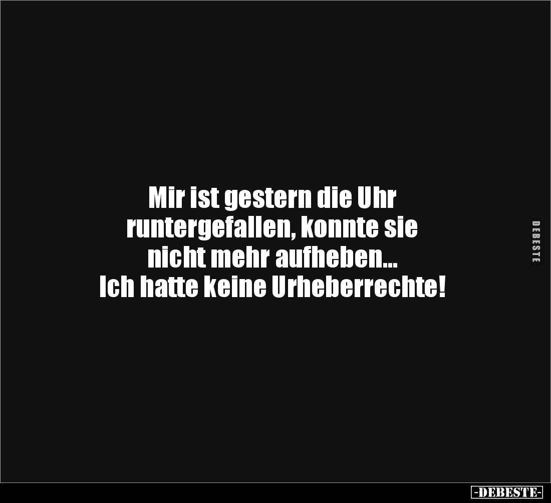 Mir ist gestern die Uhr runtergefallen, konnte sie nicht mehr aufheben... Ich hatte keine Urheberrechte!