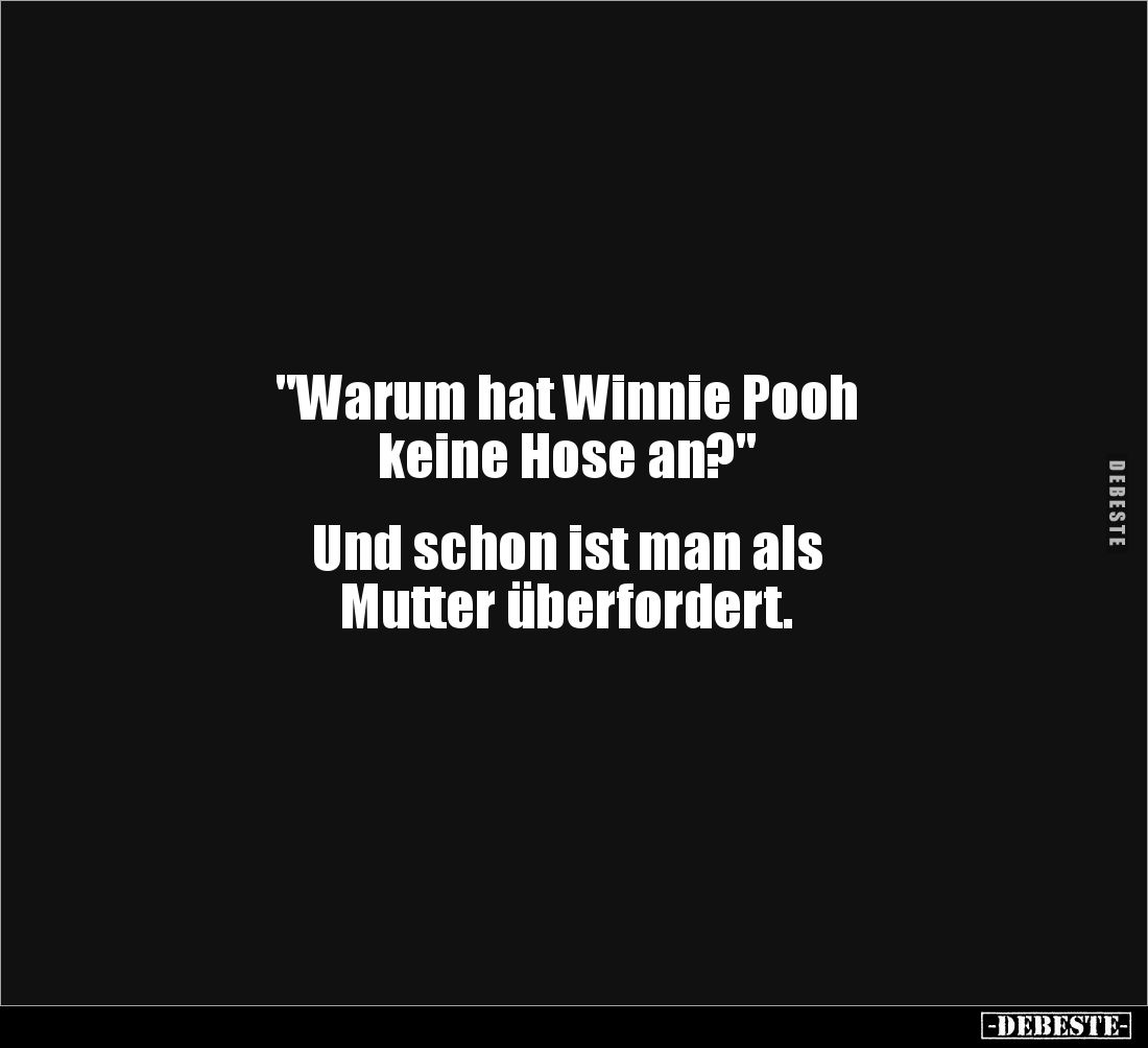 "Warum hat Winnie Pooh keine Hose an?" Und schon ist man als Mutter überfordert.