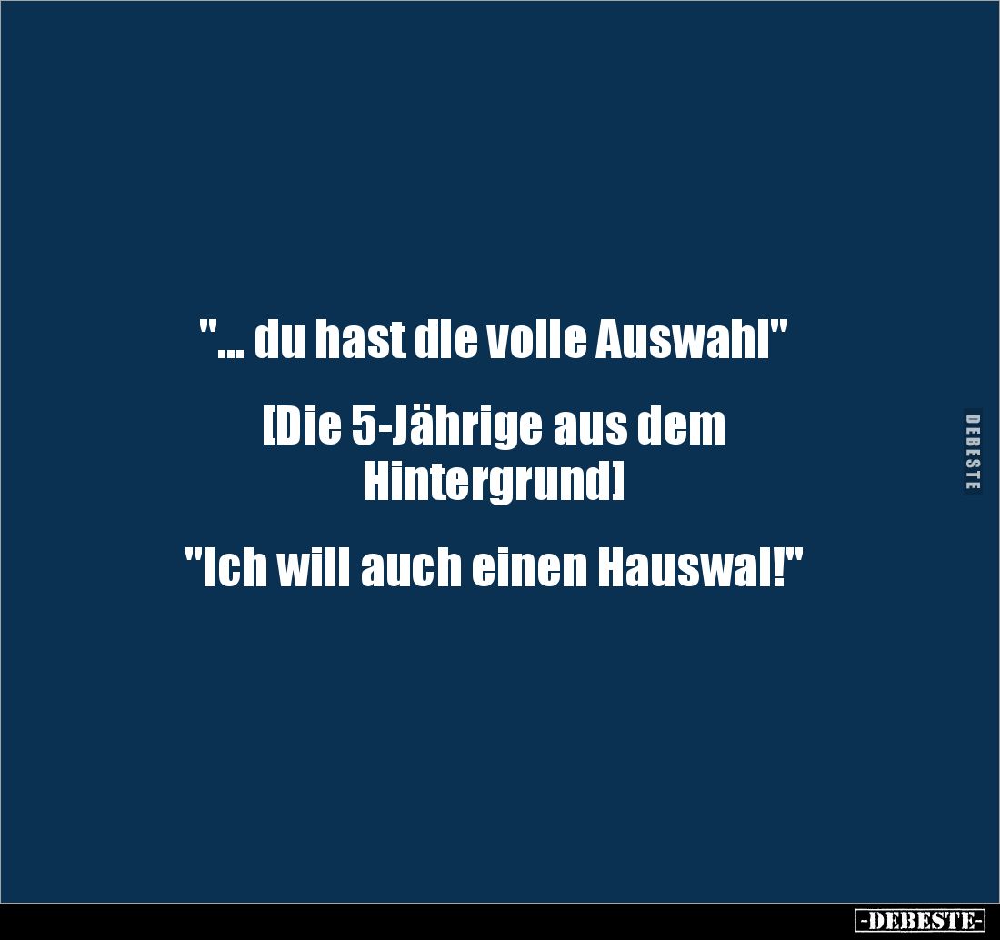 "... du hast die volle Auswahl" [Die 5-Jährige aus dem Hintergrund] "Ich will auch einen Hauswal!"
