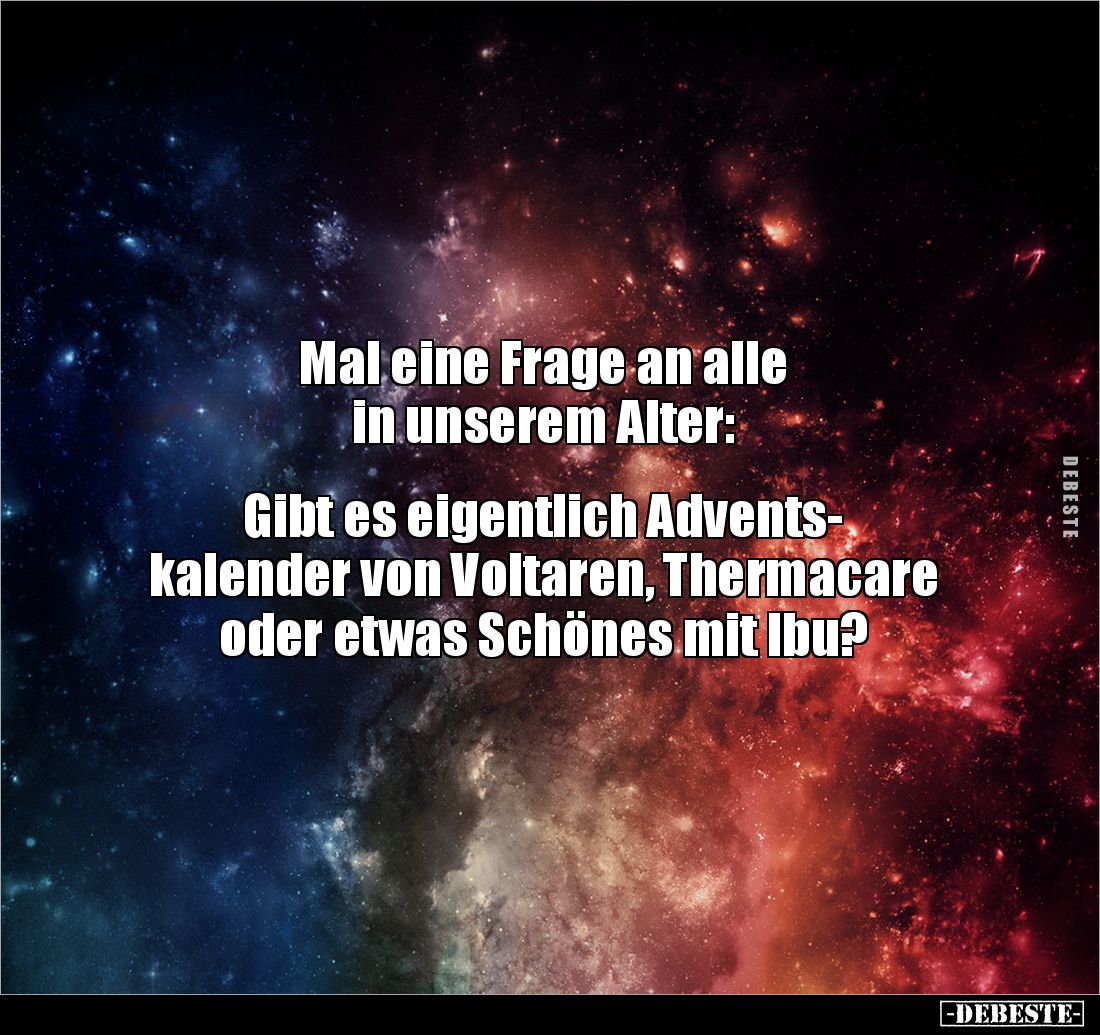 Mal eine Frage an alle in unserem Alter: Gibt es eigentlich Advents- kalender von Voltaren, Thermacare oder etwas Schönes mit Ibu?