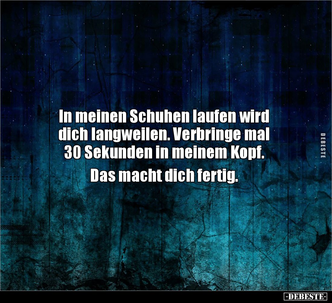 In meinen Schuhen laufen wird dich langweilen. Verbringe mal 30 Sekunden in meinem Kopf. Das macht dich fertig.