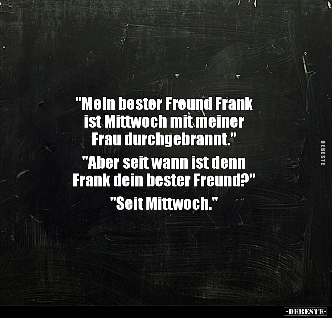 "Mein bester Freund Frank ist Mittwoch mit meiner Frau durchgebrannt." "Aber seit wann ist denn Frank dein bester Freund?" "Seit Mittwoch."