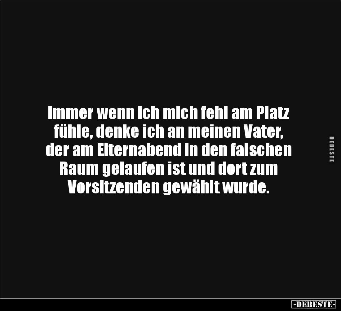 Immer wenn ich mich fehl am Platz fühle, denke ich an meinen Vater, der am Elternabend in den falschen Raum gelaufen ist und dort zum Vorsitzenden gewählt wurde.