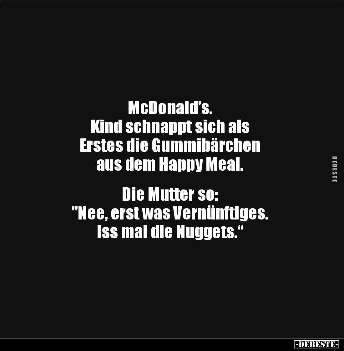 McDonald’s. Kind schnappt sich als Erstes die Gummibärchen aus dem Happy Meal. Die Mutter so: "Nee, erst was Vernünftiges. Iss mal die Nuggets.“