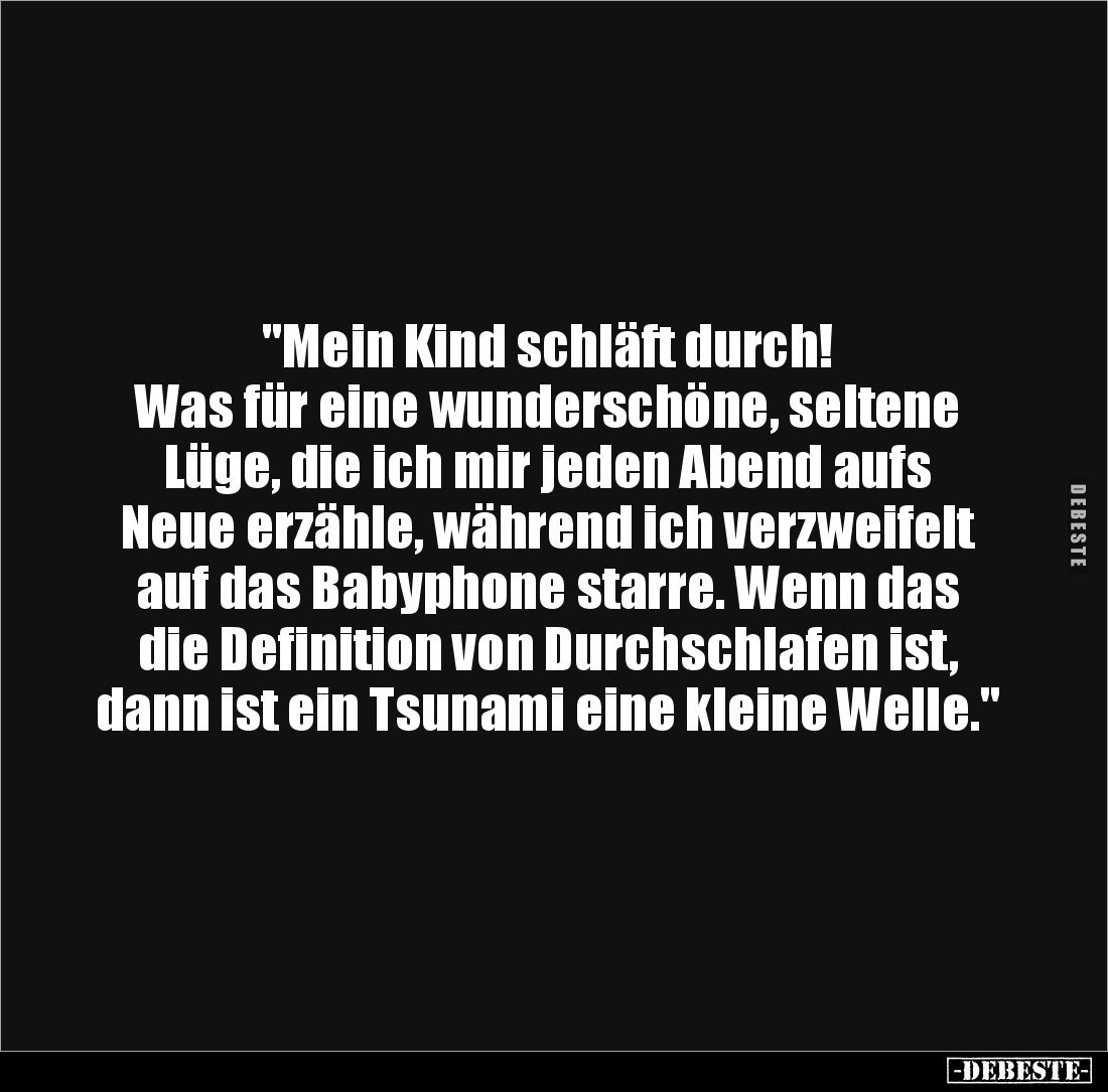 "Mein Kind schläft durch! Was für eine wunderschöne, seltene Lüge, die ich mir jeden Abend aufs Neue erzähle, während ich verzweifelt auf das Babyphone starre. Wenn das die Definition von Durchschlafen ist, dann ist ein Tsunami eine kleine Welle."