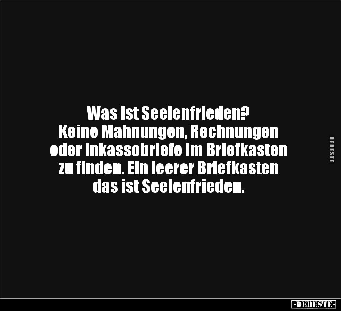 Was ist Seelenfrieden? Keine Mahnungen, Rechnungen oder Inkassobriefe im Briefkasten zu finden. Ein leerer Briefkasten das ist Seelenfrieden.