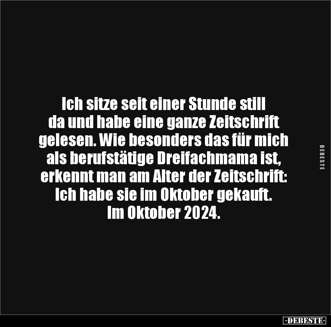 Ich sitze seit einer Stunde still da und habe eine ganze Zeitschrift gelesen. Wie besonders das für mich als berufstätige Dreifachmama ist, erkennt man am Alter der Zeitschrift: Ich habe sie im Oktober gekauft. Im Oktober 2024.