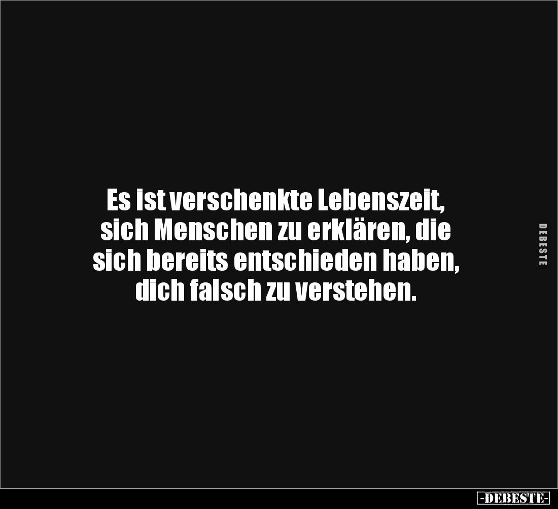 Es ist verschenkte Lebenszeit, sich Menschen zu erklären, die sich bereits entschieden haben, dich falsch zu verstehen.