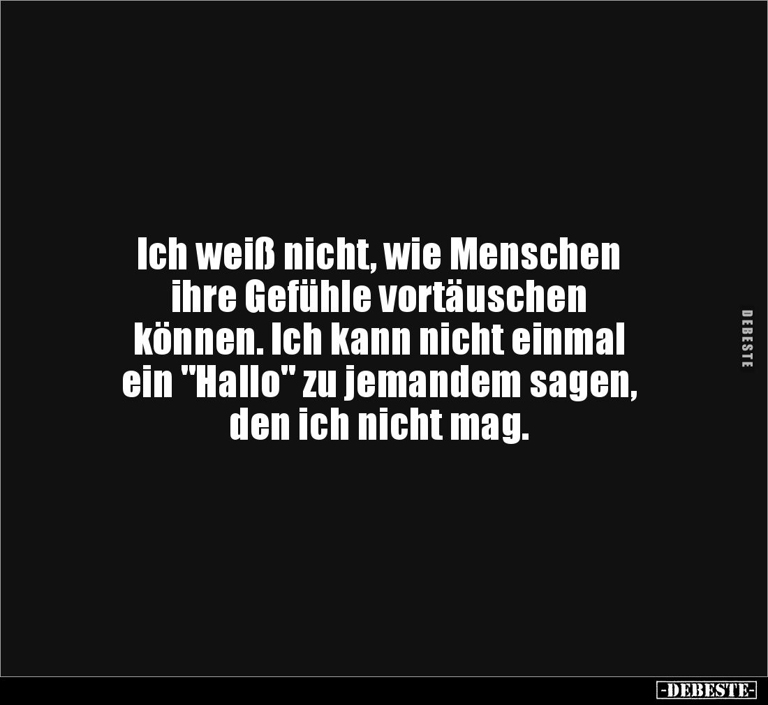 Ich weiß nicht, wie Menschen ihre Gefühle vortäuschen können. Ich kann nicht einmal ein "Hallo" zu jemandem sagen, den ich nicht mag.