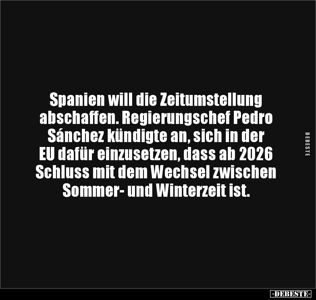Spanien will die Zeitumstellung abschaffen. Regierungschef Pedro Sánchez kündigte an, sich in der EU dafür einzusetzen, dass ab 2026 Schluss mit dem Wechsel zwischen Sommer- und Winterzeit ist.