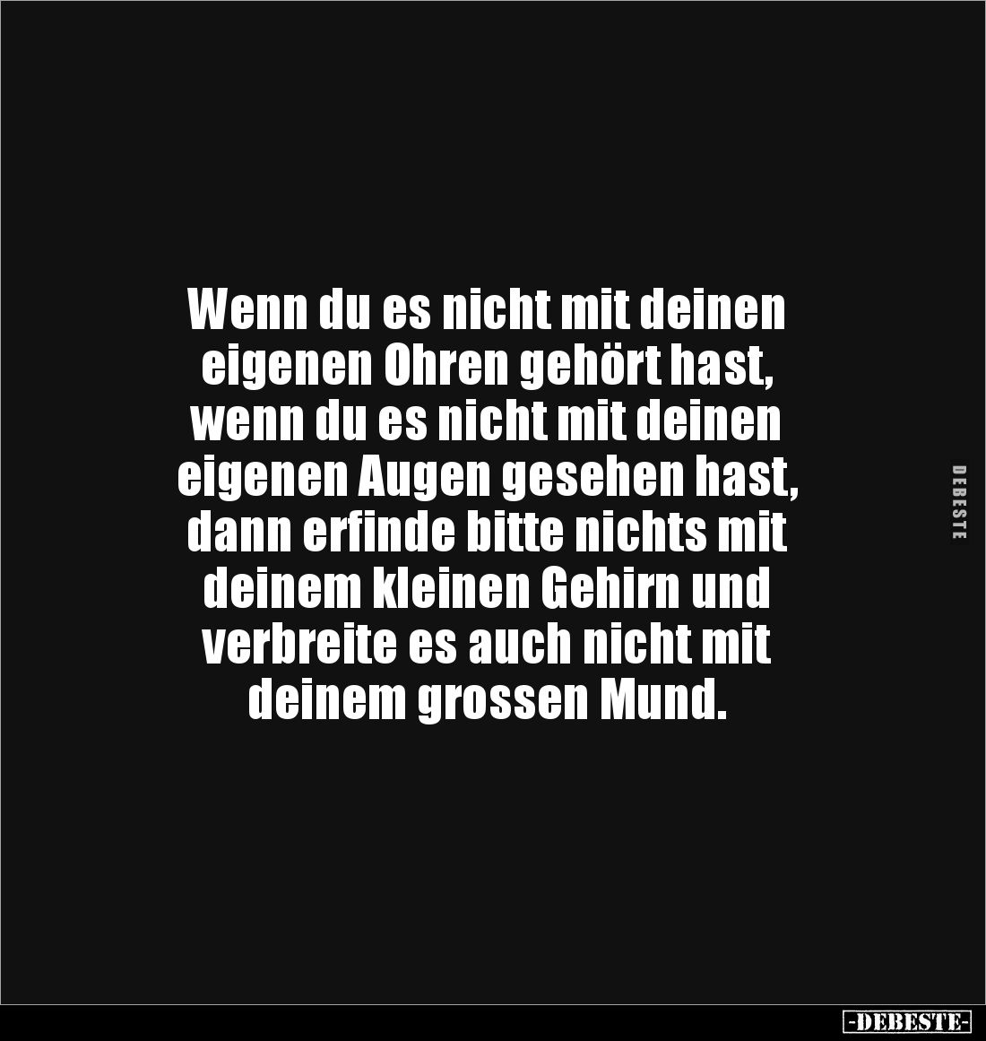 Wenn du es nicht mit deinen eigenen Ohren gehört hast, wenn du es nicht mit deinen eigenen Augen gesehen hast, dann erfinde bitte nichts mit deinem kleinen Gehirn und verbreite es auch nicht mit deinem grossen Mund.