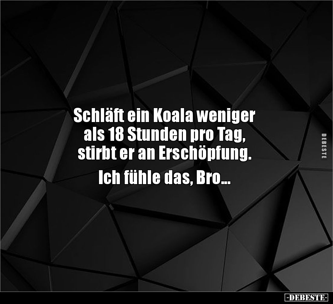 Schläft ein Koala weniger als 18 Stunden pro Tag, stirbt er an Erschöpfung. Ich fühle das, Bro...