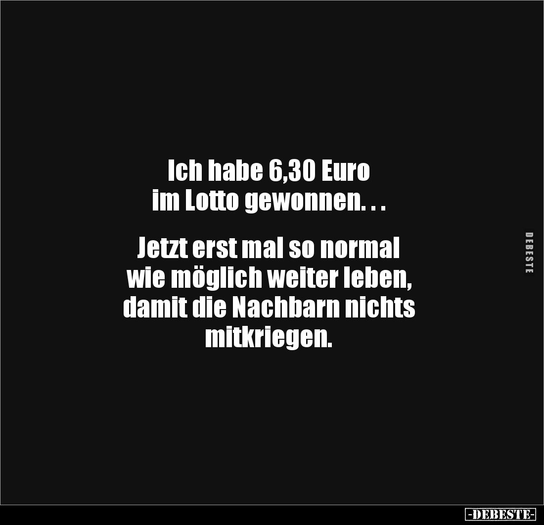 Ich habe 6,30 Euro im Lotto gewonnen. . . Jetzt erst mal so normal wie möglich weiter leben, damit die Nachbarn nichts mitkriegen.
