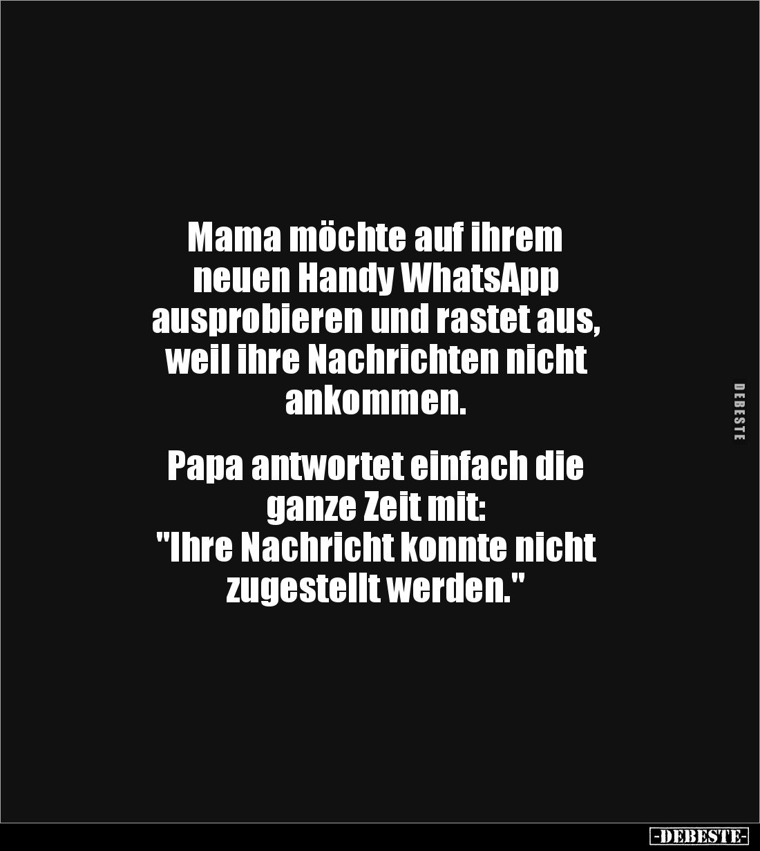 Mama möchte auf ihrem neuen Handy WhatsApp ausprobieren und rastet aus, weil ihre Nachrichten nicht ankommen. Papa antwortet einfach die ganze Zeit mit: "Ihre Nachricht konnte nicht zugestellt werden."