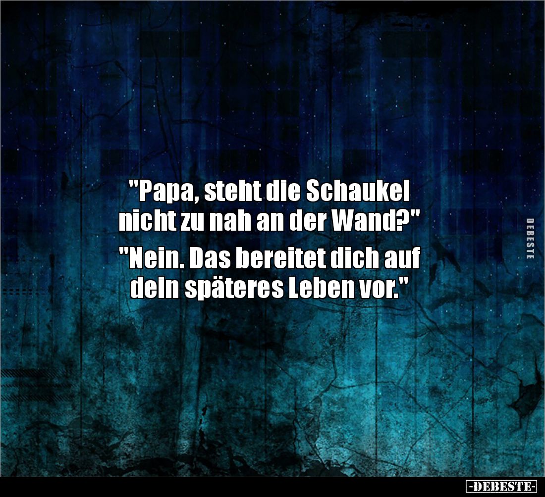 "Papa, steht die Schaukel nicht zu nah an der Wand?" "Nein. Das bereitet dich auf dein späteres Leben vor."