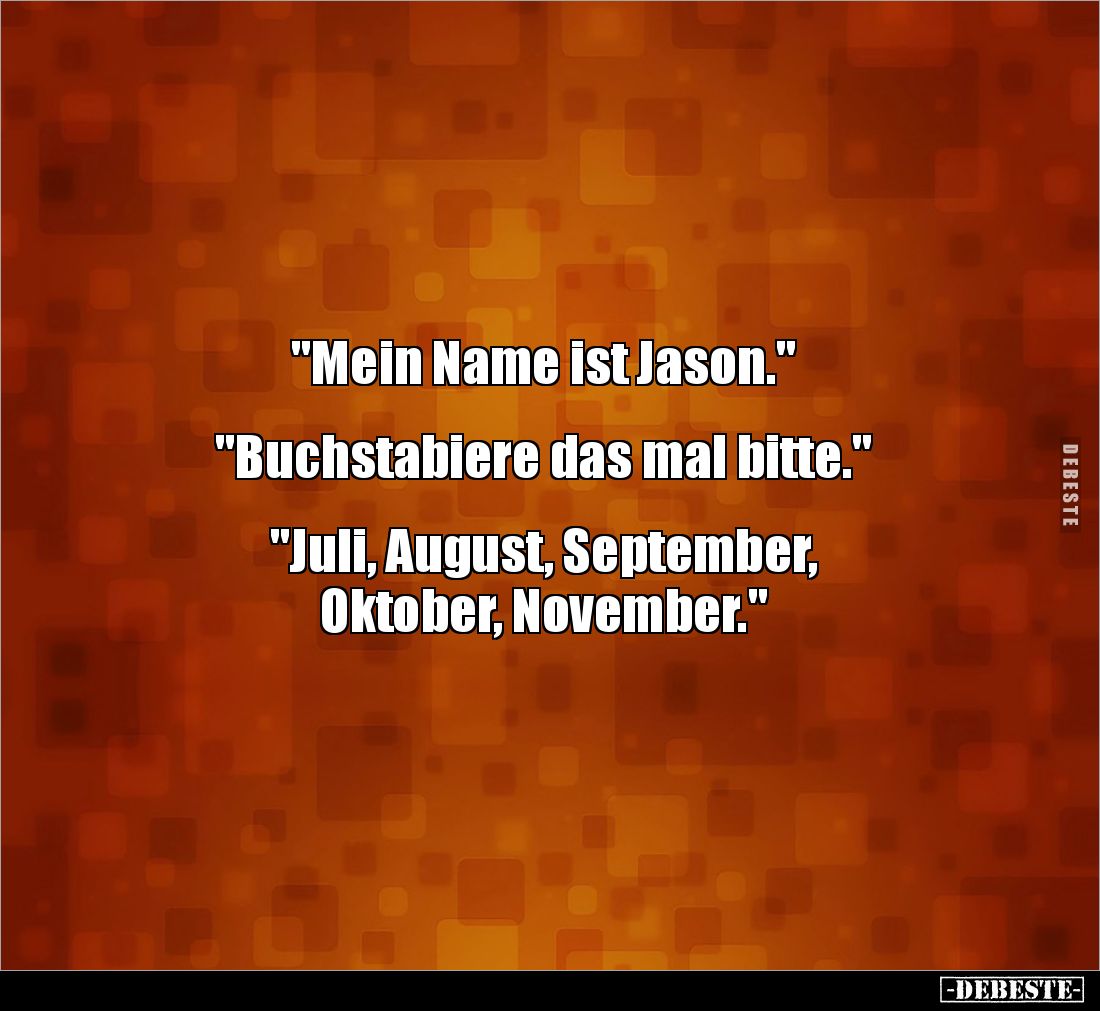 "Mein Name ist Jason." "Buchstabiere das mal bitte." "Juli, August, September, Oktober, November."