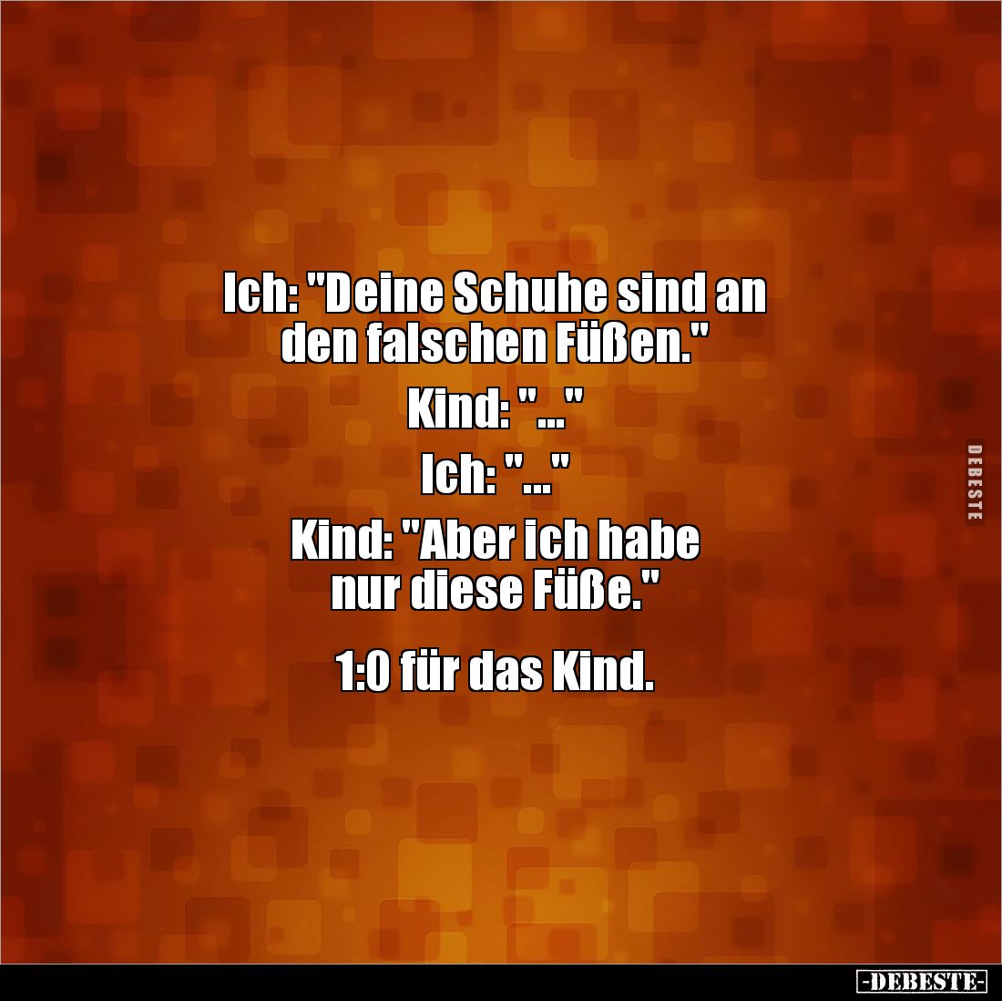 Ich: "Deine Schuhe sind an den falschen Füßen." Kind: "..." Ich: "..." Kind: "Aber ich habe nur diese Füße." 1:0 für das Kind.