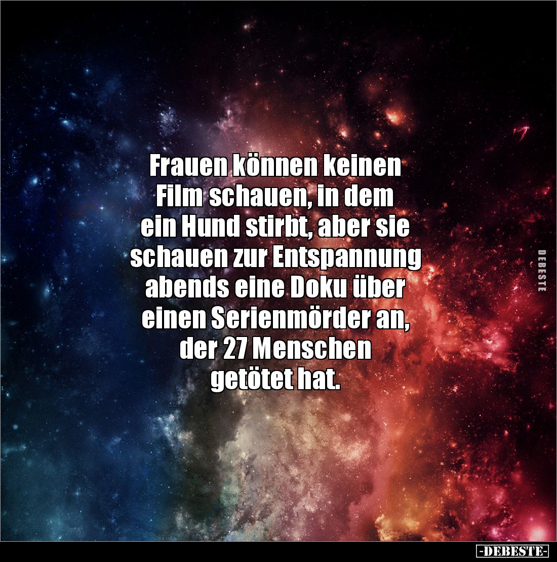 Frauen können keinen Film schauen, in dem ein Hund stirbt, aber sie schauen zur Entspannung abends eine Doku über einen Serienmörder an, der 27 Menschen getötet hat.
