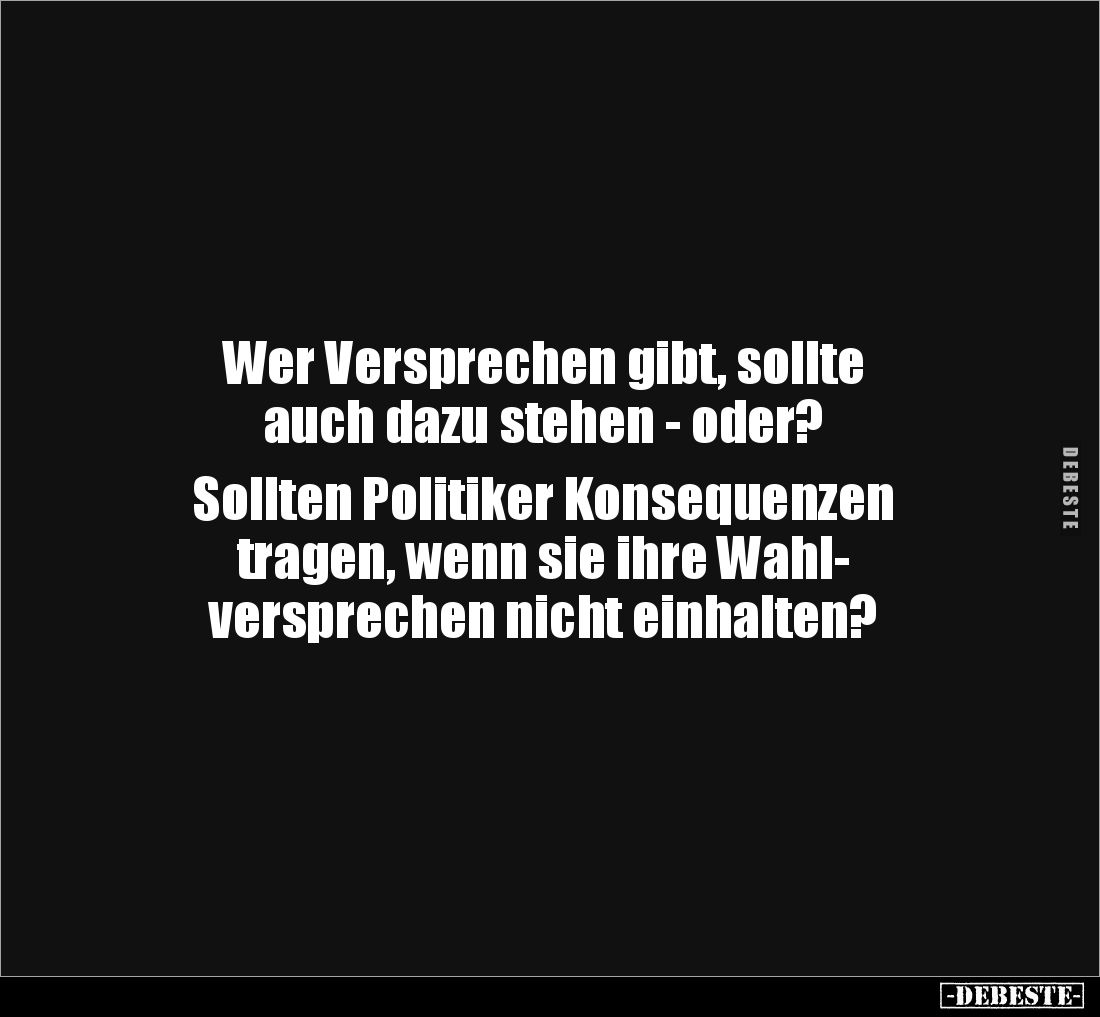 Wer Versprechen gibt, sollte auch dazu stehen - oder? Sollten Politiker Konsequenzen tragen, wenn sie ihre Wahl- versprechen nicht einhalten?