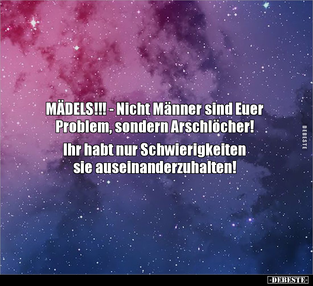 MÄDELS!!! - Nicht Männer sind Euer Problem, sondern Arschlöcher! Ihr habt nur Schwierigkeiten sie auseinanderzuhalten!