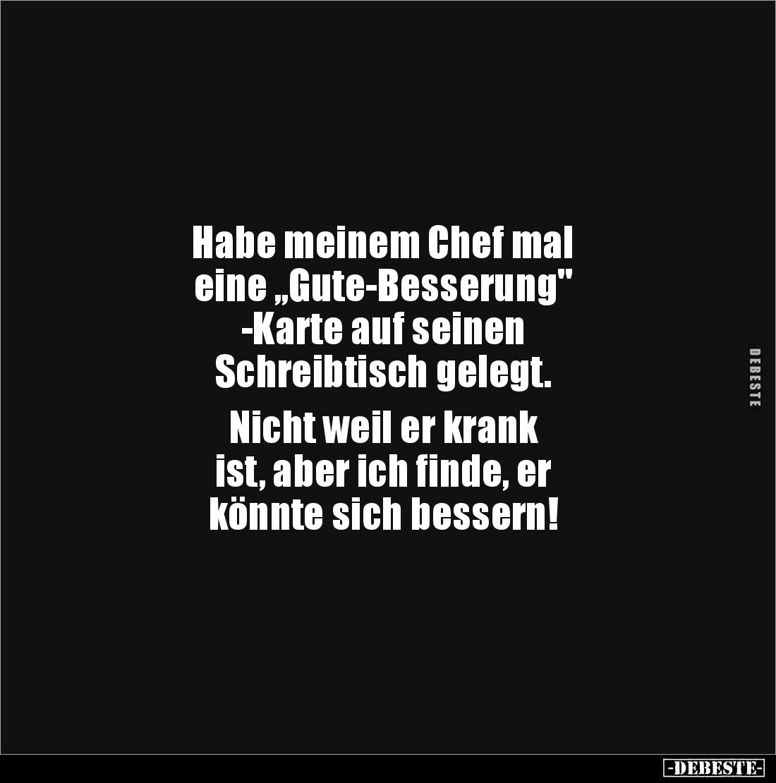 Habe meinem Chef mal eine „Gute-Besserung" -Karte auf seinen Schreibtisch gelegt. Nicht weil er krank ist, aber ich finde, er könnte sich bessern!