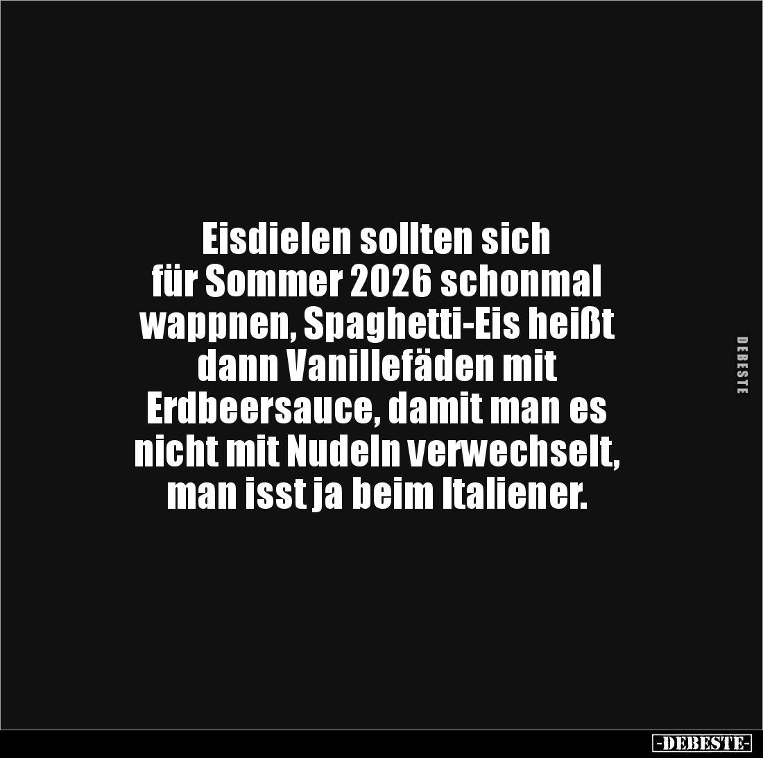 Eisdielen sollten sich für Sommer 2026 schonmal wappnen, Spaghetti-Eis heißt dann Vanillefäden mit Erdbeersauce, damit man es nicht mit Nudeln verwechselt, man isst ja beim Italiener.
