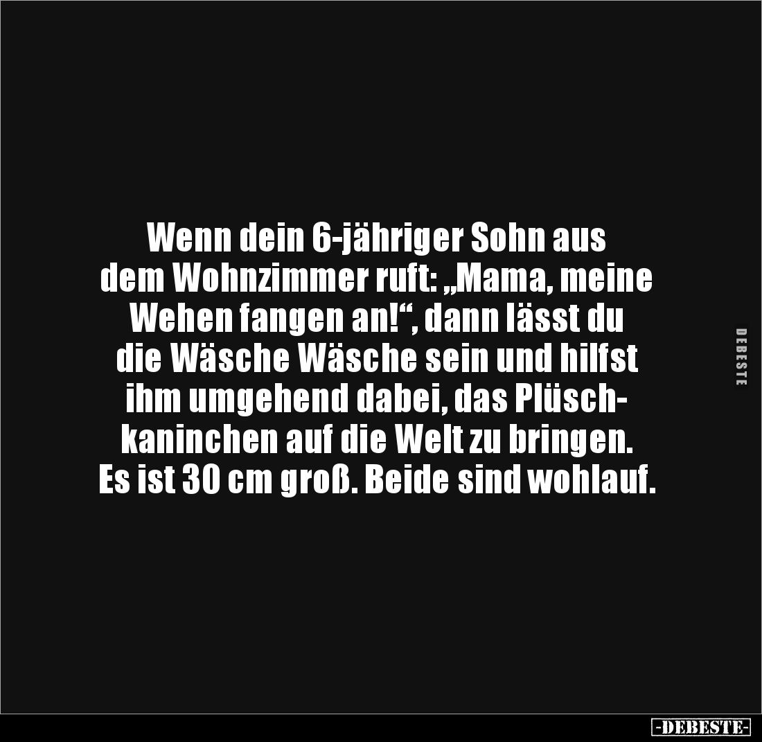 Wenn dein 6-jähriger Sohn aus dem Wohnzimmer ruft: „Mama, meine Wehen fangen an!“, dann lässt du die Wäsche Wäsche sein und hilfst ihm umgehend dabei, das Plüsch- kaninchen auf die Welt zu bringen. Es ist 30 cm groß. Beide sind wohlauf.