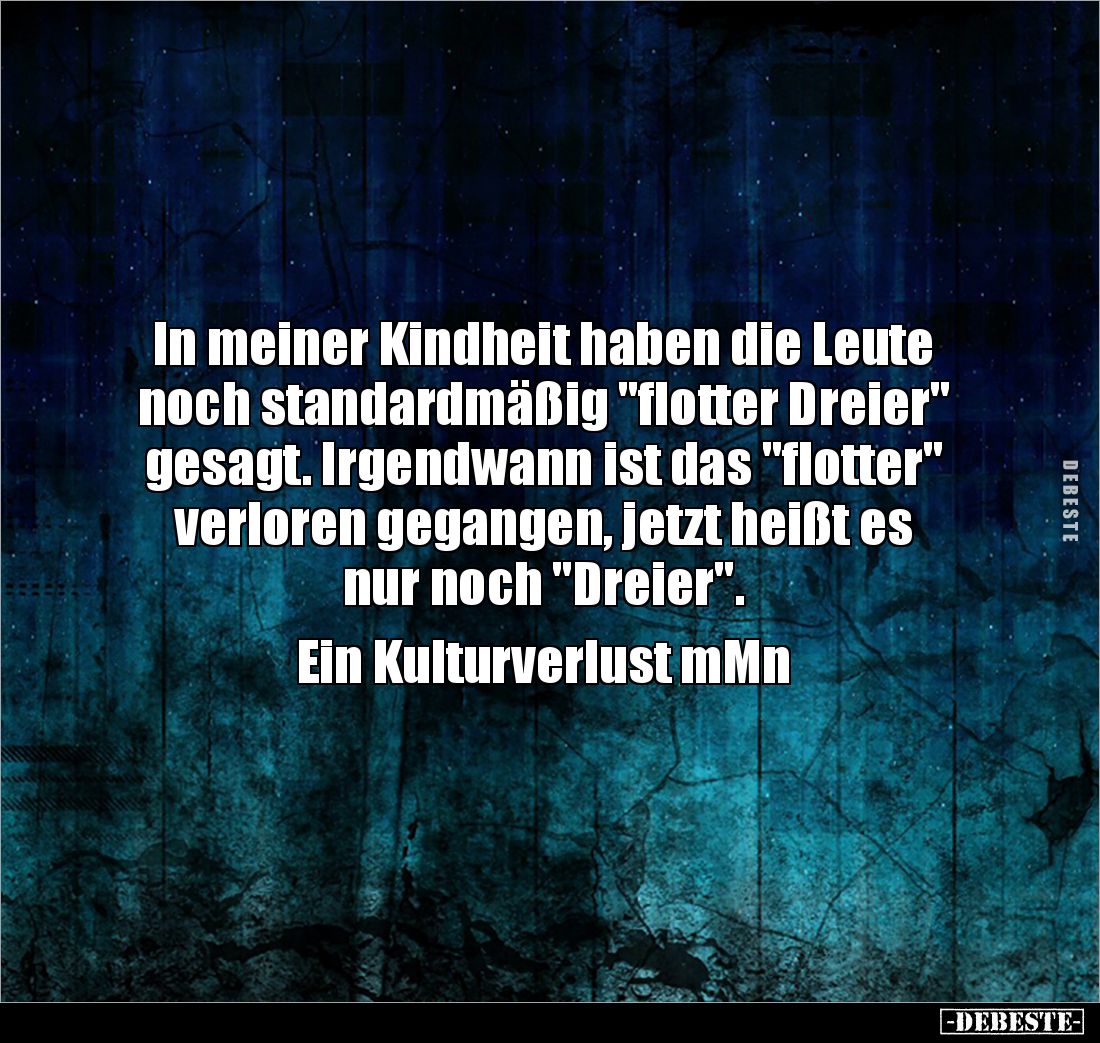 In meiner Kindheit haben die Leute noch standardmäßig "flotter Dreier" gesagt. Irgendwann ist das "flotter" verloren gegangen, jetzt heißt es nur noch "Dreier". Ein Kulturverlust mMn