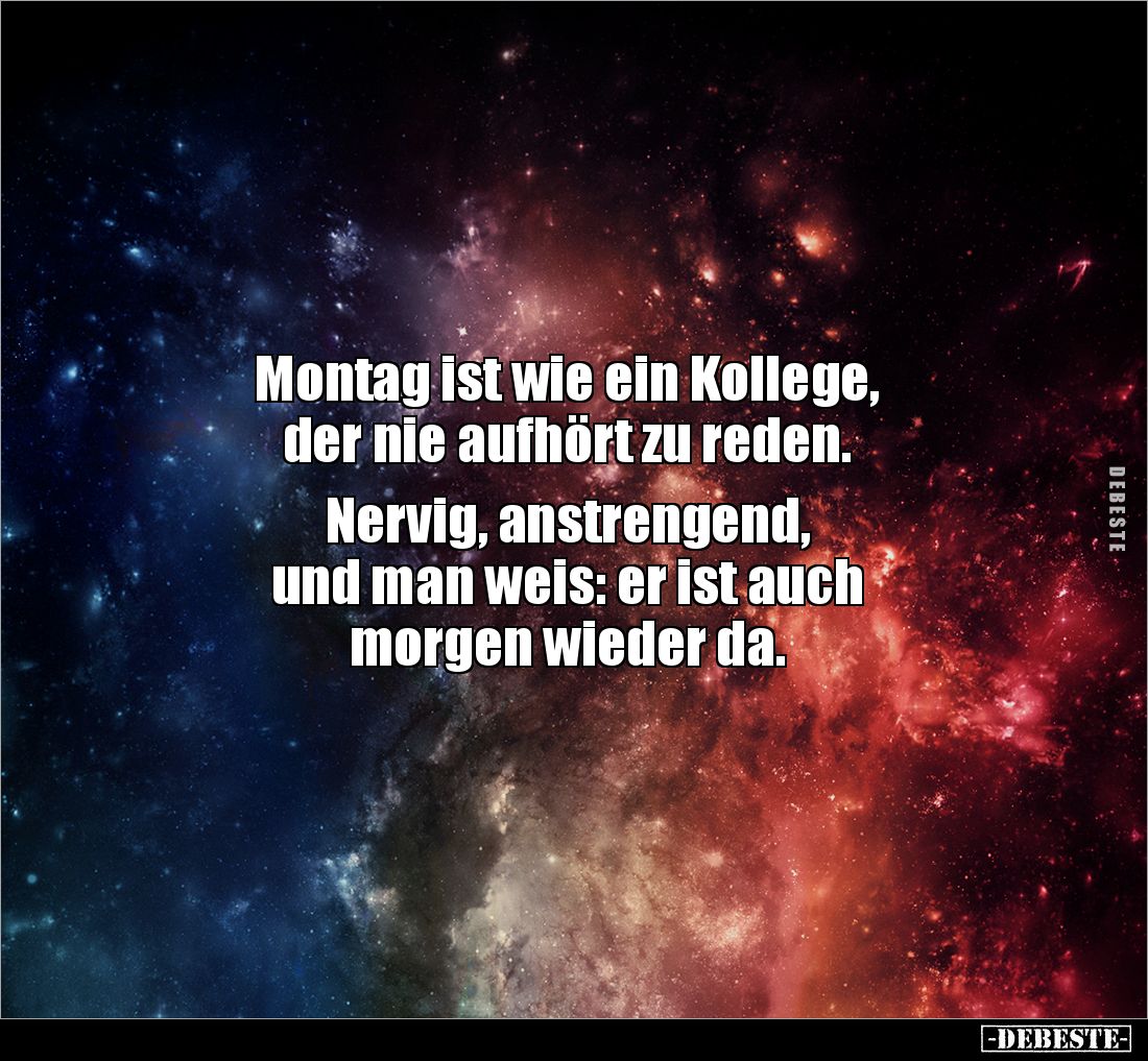 Montag ist wie ein Kollege, der nie aufhört zu reden. Nervig, anstrengend, und man weis: er ist auch morgen wieder da.