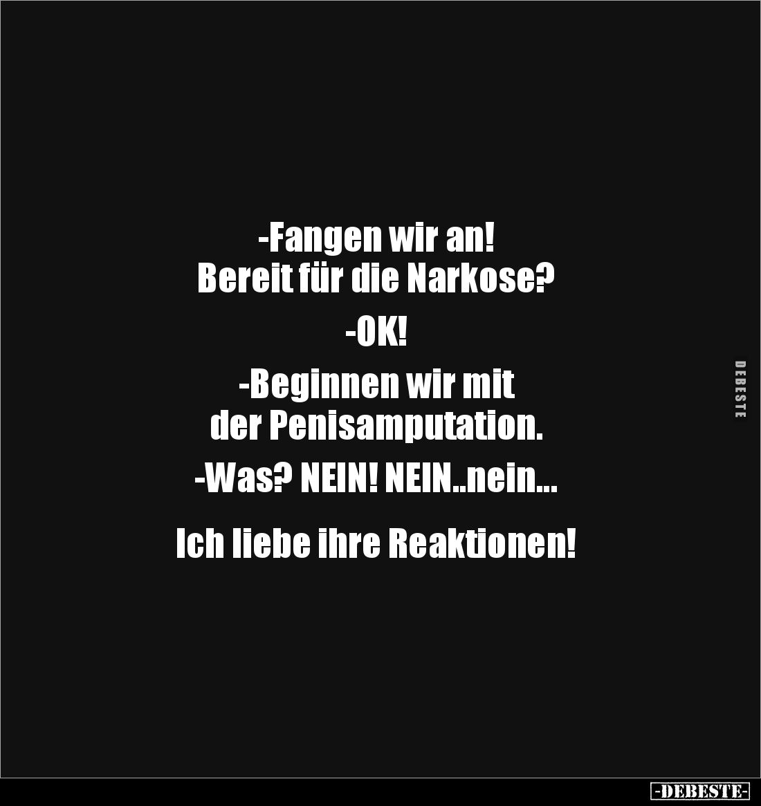-Fangen wir an! Bereit für die Narkose? -OK! -Beginnen wir mit der Penisamputation. -Was? NEIΝ! ΝΕΙΝ..nein... Ich liebe ihre Reaktionen!
