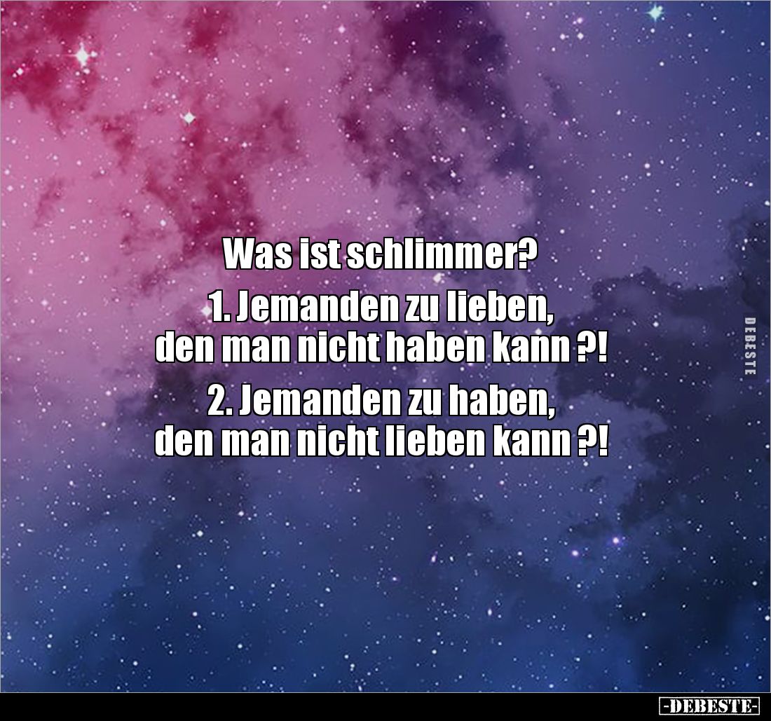 Was ist schlimmer? 1. Jemanden zu lieben, den man nicht haben kann ?! 2. Jemanden zu haben, den man nicht lieben kann ?!