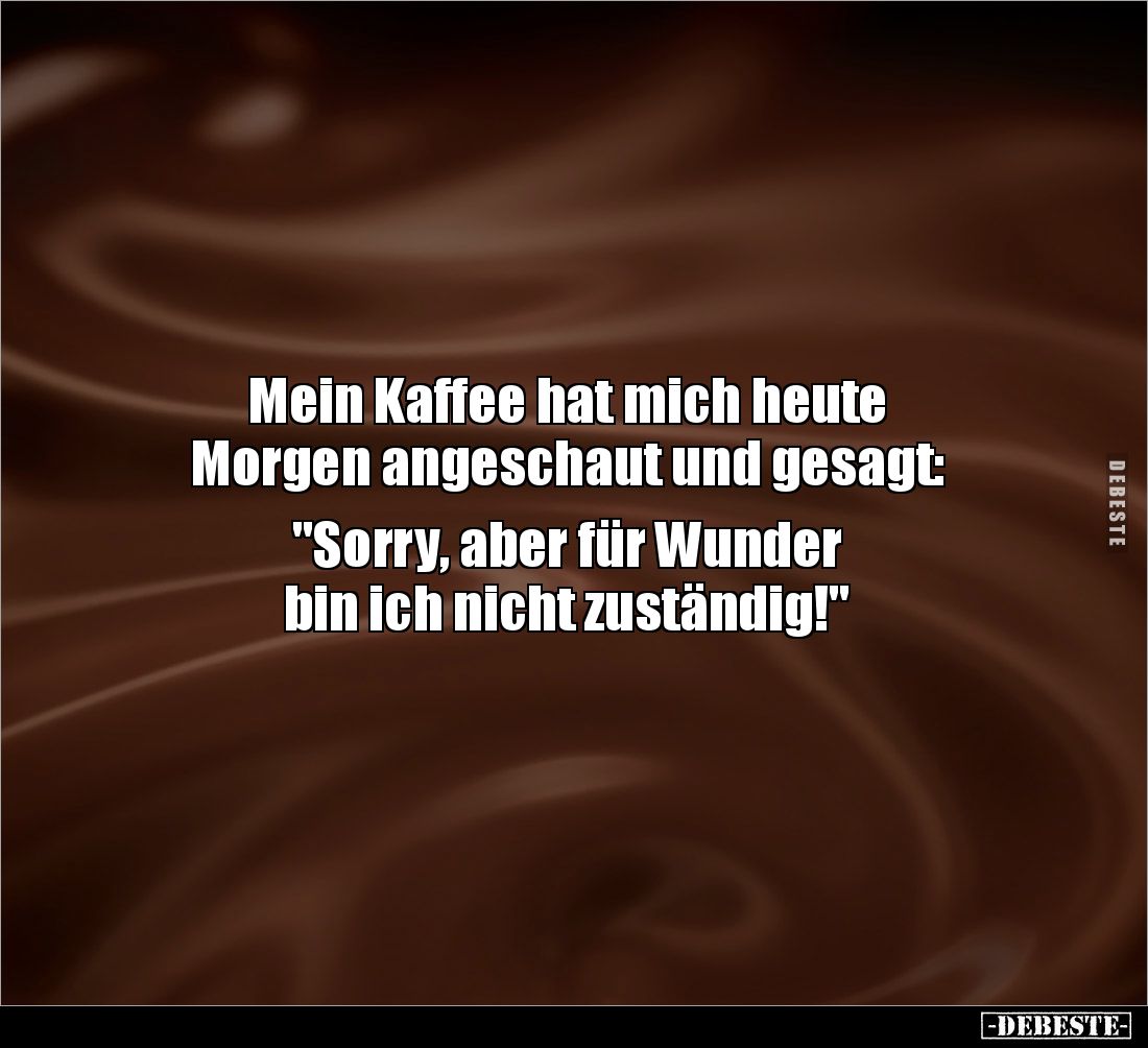 Mein Kaffee hat mich heute Morgen angeschaut und gesagt: "Sorry, aber für Wunder bin ich nicht zuständig!"