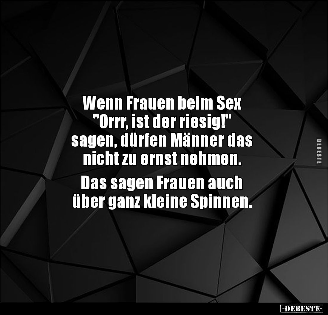 Wenn Frauen beim Sex "Orrr, ist der riesig!" sagen, dürfen Männer das nicht zu ernst nehmen. Das sagen Frauen auch über ganz kleine Spinnen.
