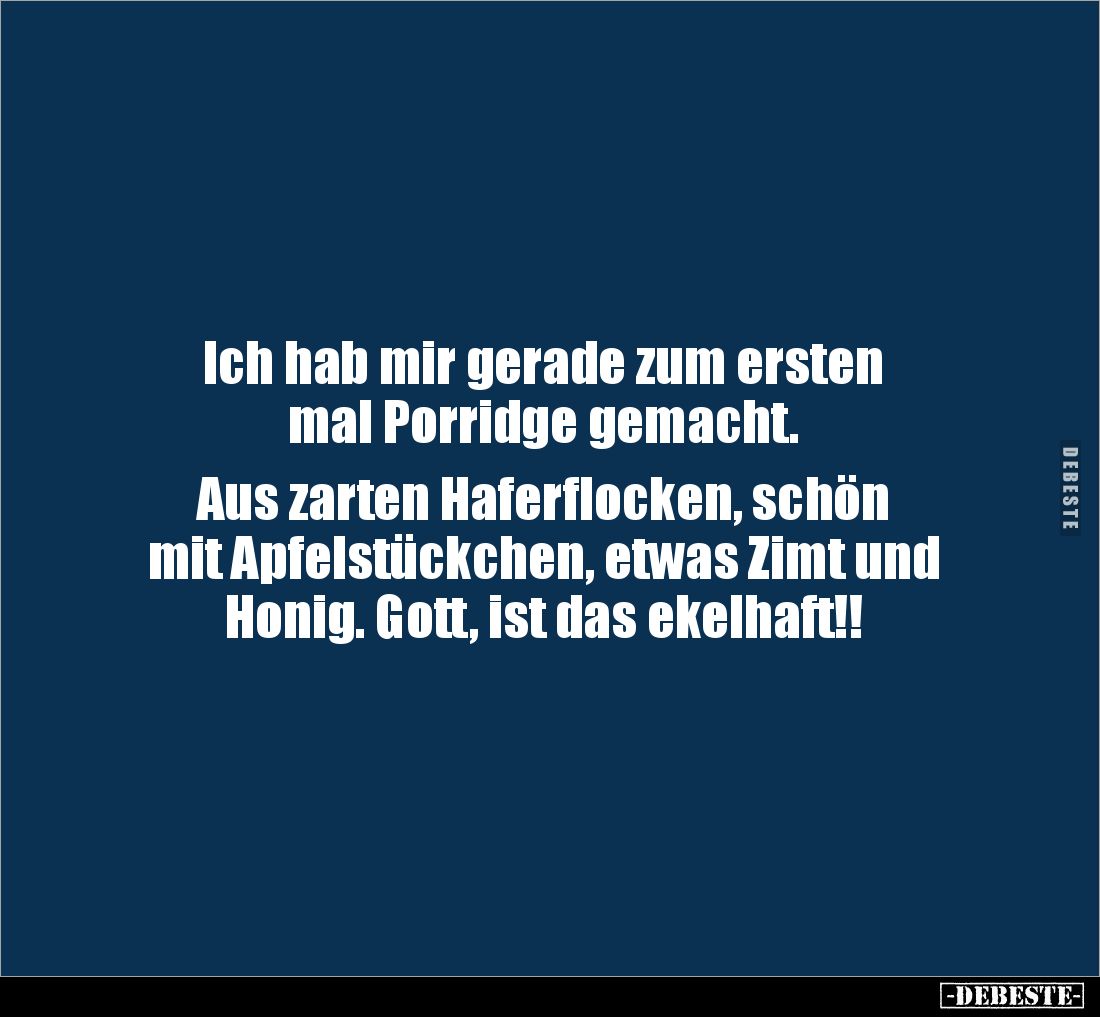 Ich hab mir gerade zum ersten mal Porridge gemacht. Aus zarten Haferflocken, schön mit Apfelstückchen, etwas Zimt und Honig. Gott, ist das ekelhaft!!