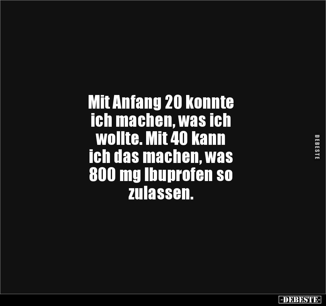 Mit Anfang 20 konnte ich machen, was ich wollte. Mit 40 kann ich das machen, was 800 mg Ibuprofen so zulassen.