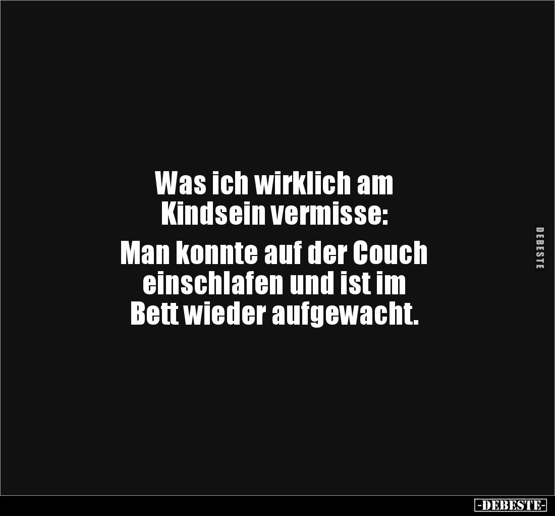 Was ich wirklich am Kindsein vermisse: Man konnte auf der Couch einschlafen und ist im Bett wieder aufgewacht.